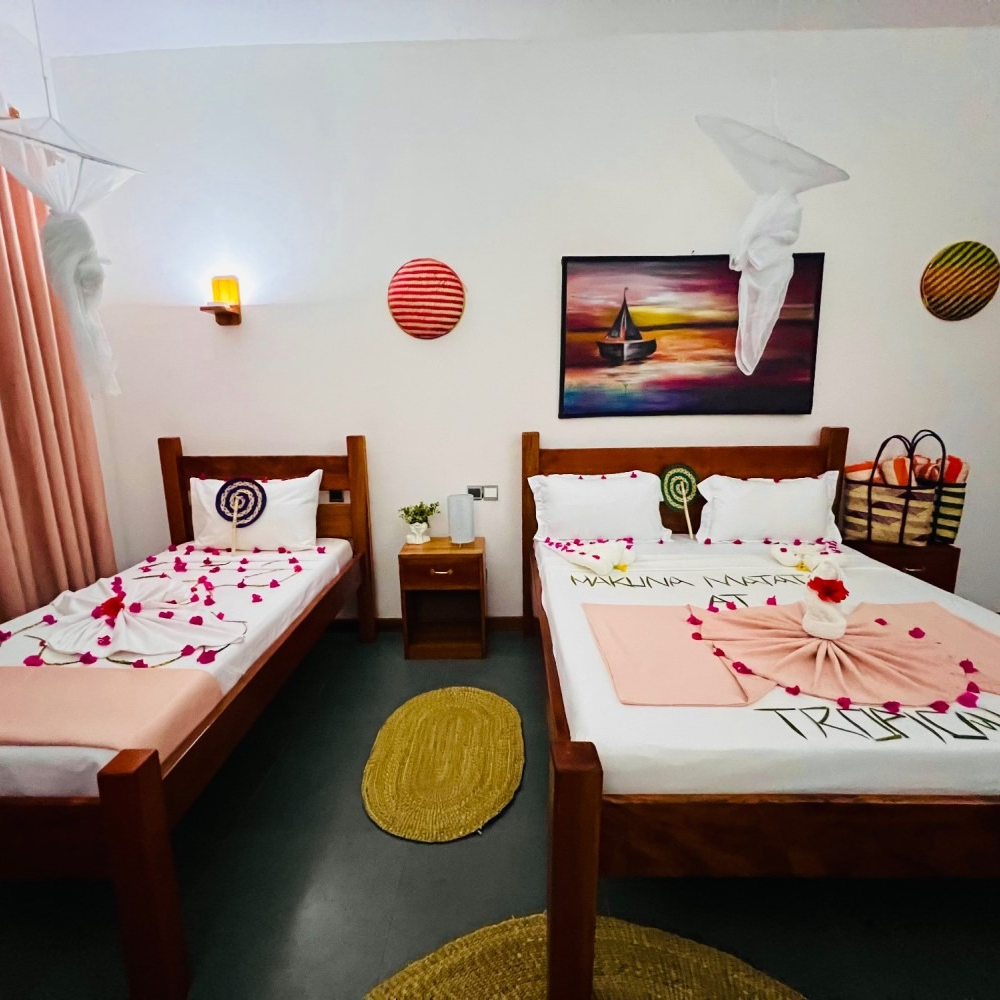 Discover the exceptional facilities at Oasis Nungwi. Enjoy free WiFi, secure location, 24/7 reception, private rooms, and modern amenities for a perfect Zanzibar stay.